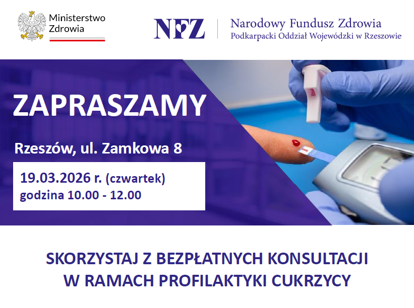 ➤ Cukrzyca nazywana jest „cichym zabójcą”, ponieważ przez wiele lat może nie dawać żadnych niepokojących objawów. Coraz więcej pracujemy, funkcjonujemy w stałym stresie, nie odżywiamy się zgodnie z zasadami zdrowego żywienia, nie dbamy także o kondycję fizyczną. Przed zachorowaniem na cukrzycę mogą nas uchronić proste działania profilaktyczne. W ramach wydarzenia ekspert na podstawie przeprowadzonego badania poziomu cukru we krwi, udzieli konsultacji, omawiając zasady zdrowego odżywiania w zakresie działań profilaktycznych chroniących przed zachorowaniem.